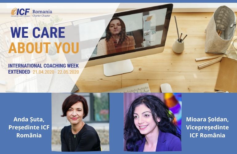 Mioara Șoldan, Vicepreședinte ICF România: “În cadrul inițiativei WE CARE ABOUT YOU avem de asemenea module _peer to peer_ dedicate colegilor de industrie, practicanți de coaching care la rândul lor susțin nevoile a zeci și zeci de clienți. Vrem să venim în sprijinul întregii comunități de coaching din România cu resursele de care are nevoie în această perioadă tumultuoasă: sesiuni de tip _peercoaching_ și supervizare, webinarii despre adaptare la contextul actual. ICF are misiunea de a contribui în mod activ la dezvoltarea continuă a competențelor membrilor comunității locale. În contextul actual, am ales ca anul acesta să extindem Săptămâna Internațională a Coaching-ului (tradițional desfășurată între 4-10 mai) la o lună. La nivel global, International Coaching Week celebrează profesia noastră și impactul pe care coaching-ul îl produce în societate, prin oferirea de sesiuni pro-bono.”