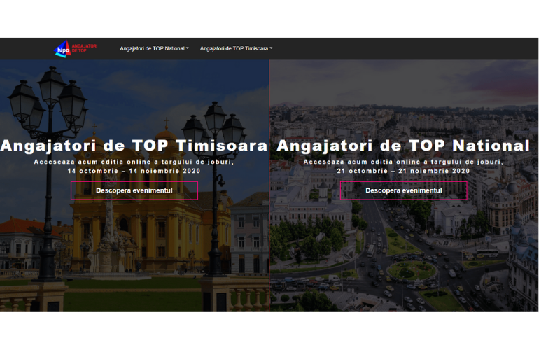 Cel mai mare târg de carieră din România și-a încheiat cele două ediții din această toamnă, desfășurate exclusiv în mediul online. Consacratele ediții Angajatori de TOP s-au desfășurat în mediul virtual, pe platforma Hipo.ro, timp de 30 de zile în Timișoara și la nivel național, cu acoperire în orașe precum: București, Constanța, Craiova, Pitești, Ploiești, Galați, Brașov, Sibiu, Cluj-Napoca și Iași. Târgurile au reunit companii de top multinaționale și locale din țară, care au fost prezente cu o paletă diversificată de oportunități carieră, astfel încât fiecare participant a avut ocazia să își găsească jobul sau programul de internship potrivit.