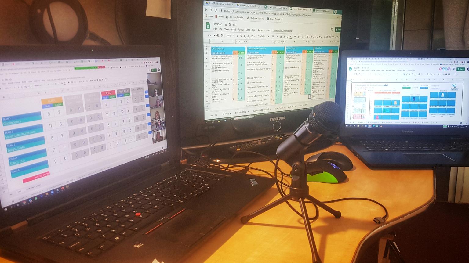 G.A: Din punctul nostru de vedere ”starea” de care vorbeam mai sus și care este la cote maxime într-o simulare față în față ajunge în felul în care am transformat noi simulările la cel puțin 80% în varianta online. Și asta am ținut mult să se întâmple, fiindcă am creat multă interactivitate între participanți și între traineri și participanți în toate etapele simulărilor. Se lucrează pe activități concrete, pe subgrupe și în plen, este competivitate, fiindcă am păstrat concurența între echipe, se face foarte multă legătură prin debriefing și dezbateri între comportamentele și rezultatele de pe parcursul simulării și viața reală din organizațiile de unde provin participanții. Am exclus aproape total expunerile trainerilor, modelele și conceptele sunt introduse firesc, pe măsura ce apar situațiile potrivite.
