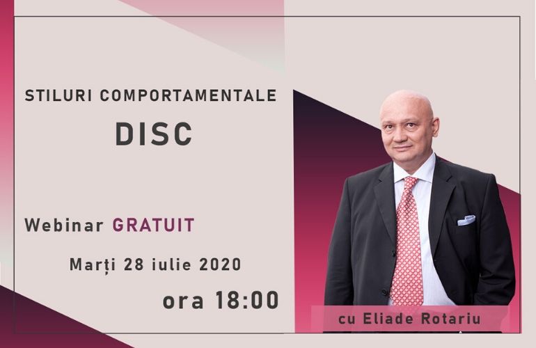 Înscrie-te la webinarul GRATUIT - "Stiluri comportamentale DISC" , susținut de către Eliade Rotariu - trainer, coach și consultant de management , împreună cu care vei găsi răspunsuri la întrebările care te preocupă , dar mai ales vei învăța să te cunoști pe TINE.
